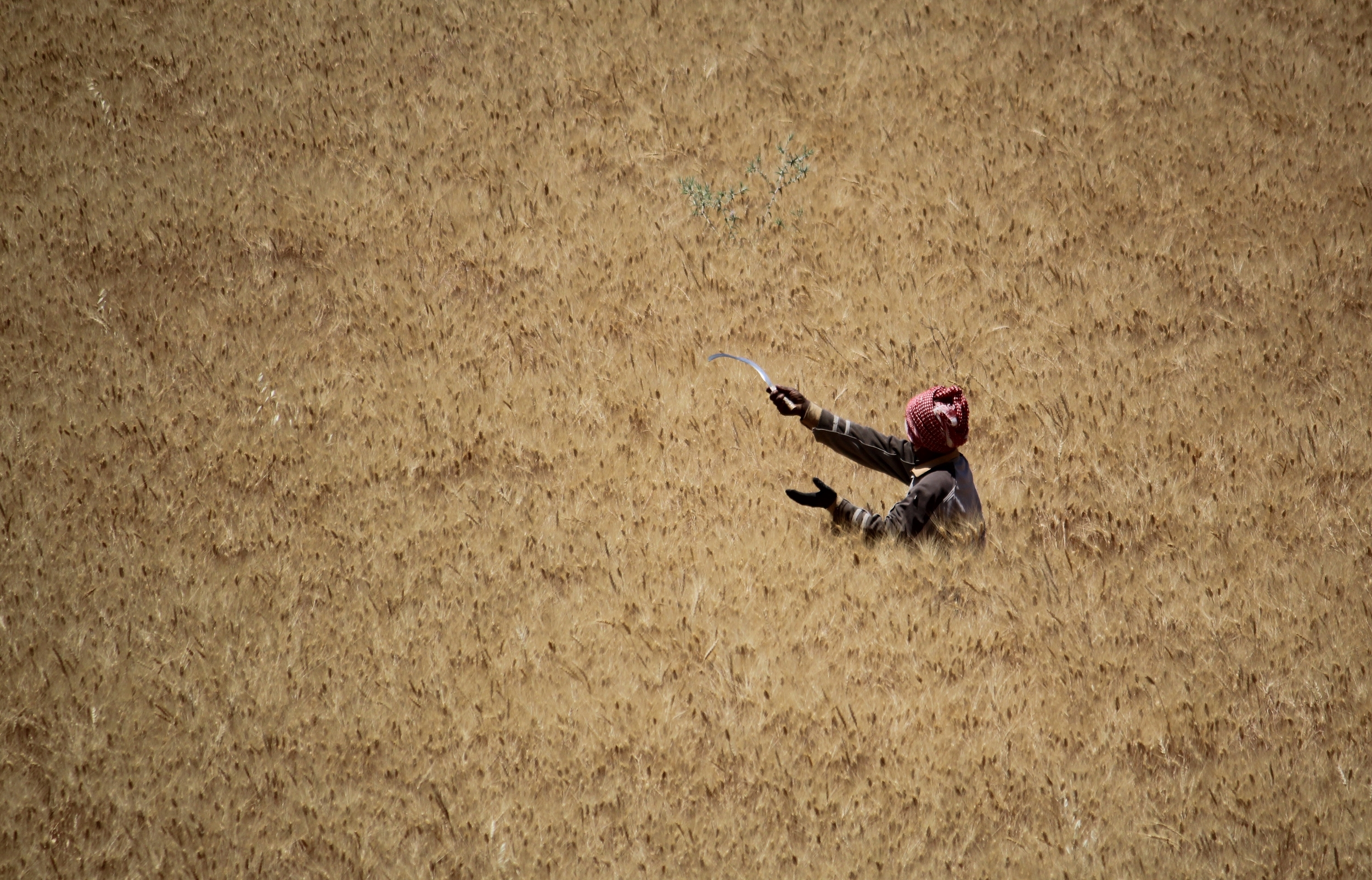 Photograph: Wheat harvest with Zikra for Popular Learning, Amman, 2020.